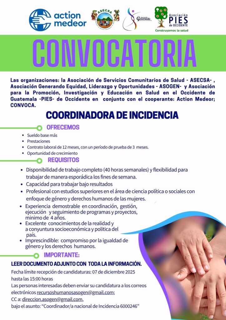 En esta sección se publican las convocatorias vigentes para ofertas laborales en ASOGEN. Aquí encontrarás oportunidades para unirte a nuestro equipo y contribuir a nuestra misión de apoyo integral a mujeres y comunidades.