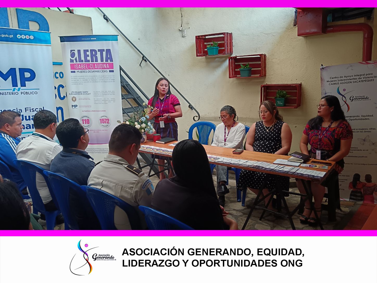 Por parte del Tribunal de Sentencia Penal de Delitos de Femicidio y Otras Formas de Violencia Contra la Mujer y Violencia Sexual de Chimaltenango participaron la jueza Verónica de León Xovín, Magistrados de la Sala Regional Mixta de la Corte de Apelaciones del departamento de Chimaltenango Daniel Mauricio Tejeda Ayestas, Presidente; Nelson Orlando Lopez Coronado, Vocal I, y Alaín René Morales Sagastume, Vocal II, los Jueces Walter Oliver Villatoro Díaz y Herson Alberto Tzoc Sucuqui, la Jueza Mayra Méndez Arenas. Seguido del acto protocolario, se dio el espacio al foro «El acceso a la justicia a través de la virtualidad, en la justicia especializada en el departamento de Chimaltenango, avances y desafíos», donde Participaron en el panel El Juzgado de Primera Instancia Penal de Delitos de Femicidio y Otras Formas de Violencia contra la Mujer y Violencia Sexual del departamento de Chimaltenango, El Instituto de la Defensa Pública Penal, La Asociación Generando, Equidad, Liderazgo y Oportunidades, La Procuraduría General de la Nación, El Tribunal de Sentencia Penal de Delitos de Femicidio y Otras Formas de Violencia contra la Mujer y Violencia Sexual de Chimaltenango, El Instituto a la Victima, El Instituto Nacional de Ciencias Forenses de Guatemala. ASOGEN lleva más de diecisiete años trabajando para el acceso a la justicia, y con trabajos en conjuntos se logró que en 2017 se implementara la justicia especializada en el departamento de Chimaltenango con las Entidades correspondientes.